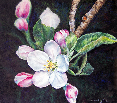 "Apple Blossoms" colored pencil